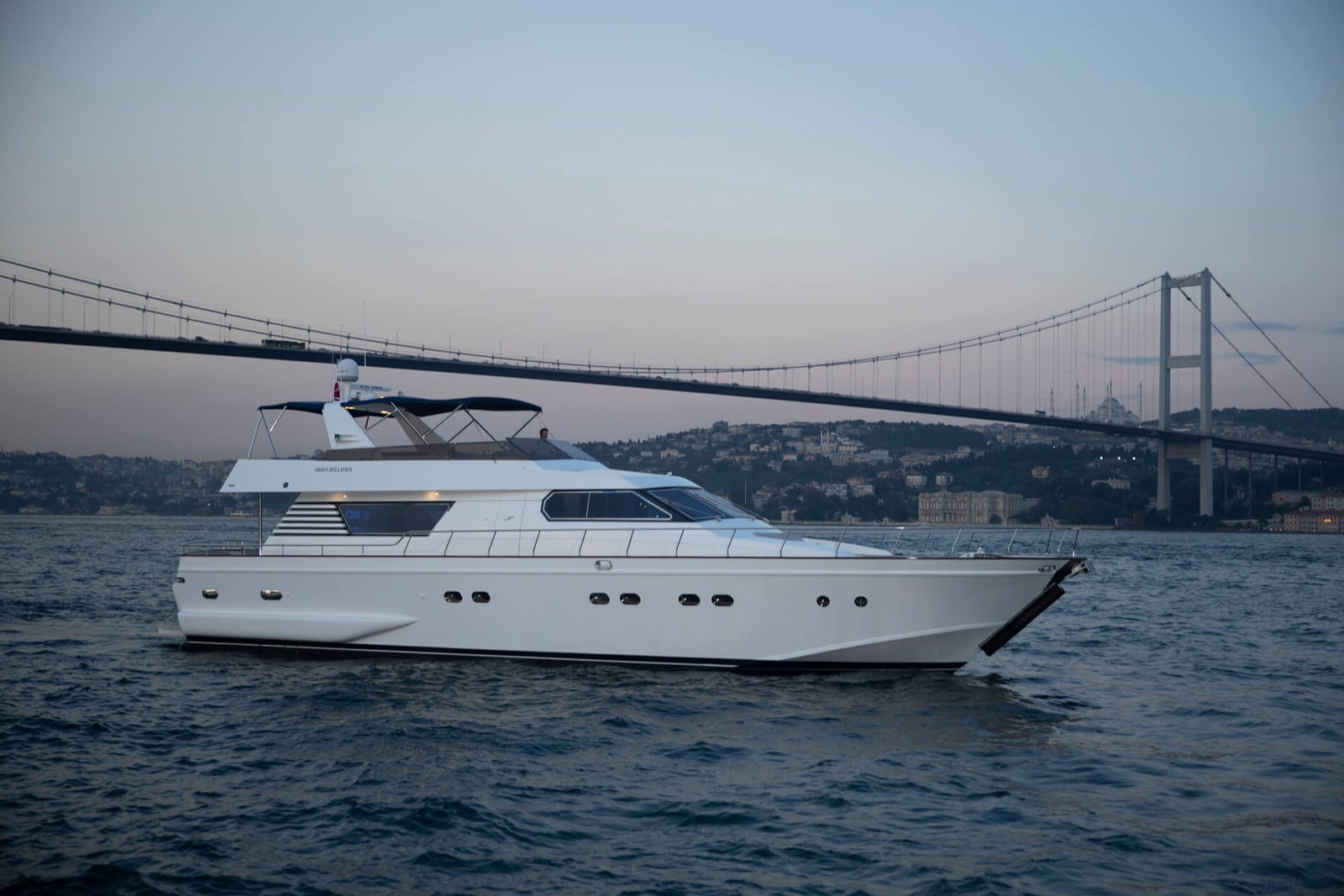 Our yacht charter service; It is given on the Anatolian and European side strip of the Bosphorus, between Eminönü and Pendik, Yenikapı Ataköy route and around the Islands. Our yacht is original Italian built and has a private motor yacht concept. We make your Bosphorus tour organizations perfectly. You can rent a yacht by calling us 24 hours a day.