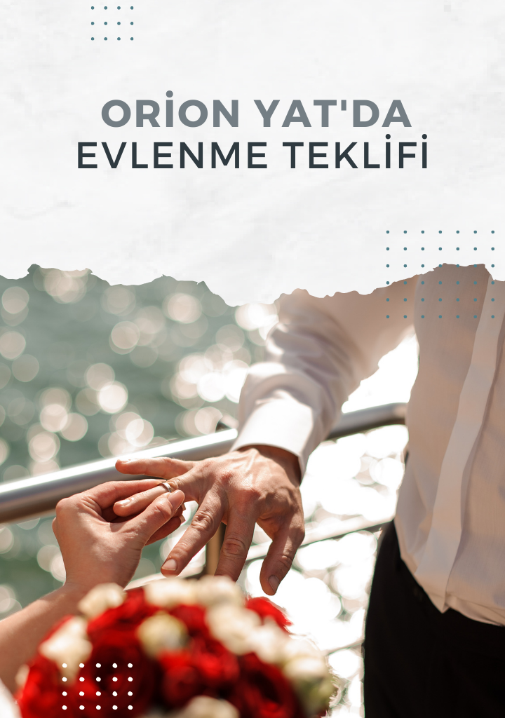 Orion yatçılık, on yılı aşkın uzmanlığı ile hızla çalışmalarını sürdürmektedir. Yatta romantik akşam yemeğin eşliğinde Evlenme Teklifi organizasyonunu sizin için sunan. Orion yatçılık eşiniz evlilik yıldönümü için akşam yemeği veya sevgiliniz ile unutamayacağınız yatta romantik akşam yemeği organizasyonu yaşatıyor. Romantik bir organizasyon ile yatta romantik akşam yemeği ve daha fazlası için iletişime geçebilirsiniz. İstanbul’un eşsiz manzarası ve boğazında eşinize veya sevgilinize mumlarla aydınlatılmış yatta sizin için özel olarak hazırlanan akşam yemeği ile sürpriz yapın.