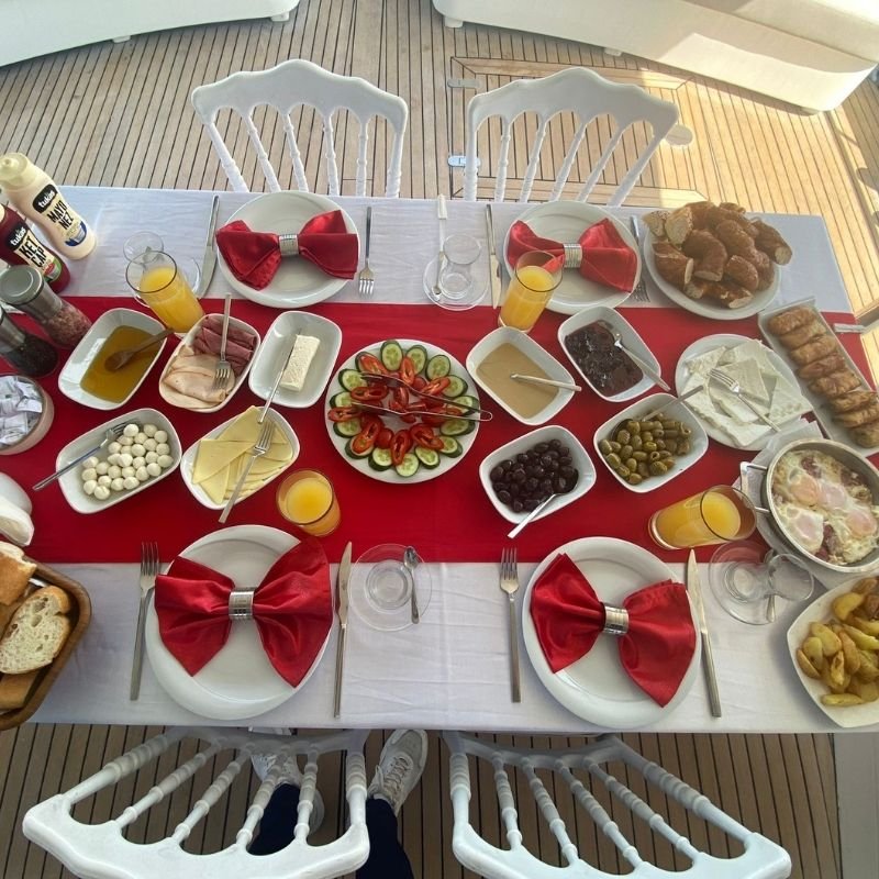 Orion yatçılık hizmetlerimiz arasında yer alan yatta kahvaltı turları organizasyonumuza hayran olacaksınız. Kahvaltı masanızı sanata dönüştürdüğümüz hizmetimiz ile gözleriniz kamaşacak. Hizmetlerimizi, kesintisiz ve kusursuz bir şekilde sizlere sunuyoruz. Özel yatımızda kahvaltı keyfinizi yaşarken profesyonel garson hizmetlerimizden de yararlanacaksınız. Özenle sizlere hizmet eden garsonlarımız da alanlarında uzman kişilerden oluşmaktadır.